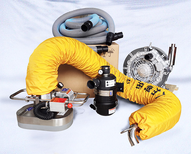 能夠有效提升單位面積可產(chǎn)生的吸力的方法在于: 1)減少設(shè)備自重,等于增加了有效提升能力。 2)設(shè)備系統(tǒng)整合優(yōu)化后, 比如新材料的應(yīng)用、結(jié)構(gòu)件的合理設(shè)計等等, 最大程度發(fā)揮了系統(tǒng)的效能。3)盡可能選用數(shù)量少的吸盤, 減少不必要的橫梁和吸盤重量。減少了設(shè)備的空載重量, 就等于增加了可提升的滿載重量。
